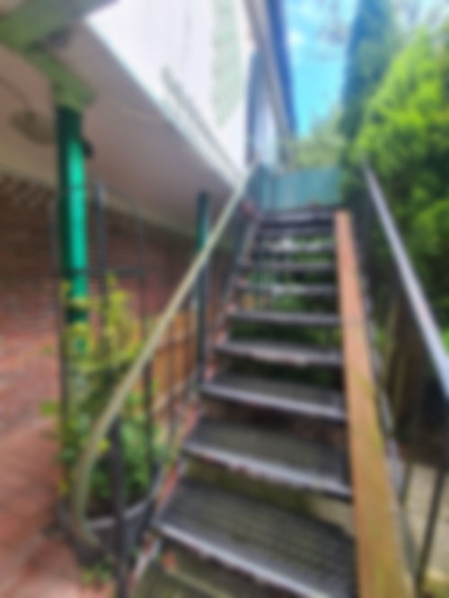 Sie können von hier aus Treppen hoch zum Zimmer gehen.