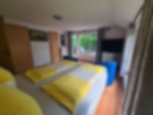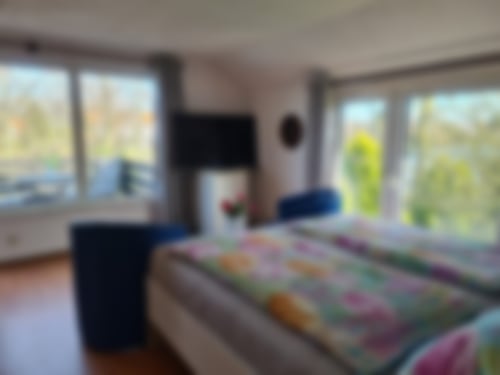 Einfaches Zimmer Seeufer 2 mit Frühstück, Bad, Kühlschrank, TV und Balkon. Direkt neben der Pension Seeufer.